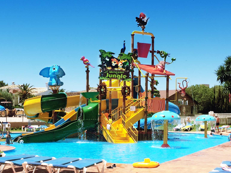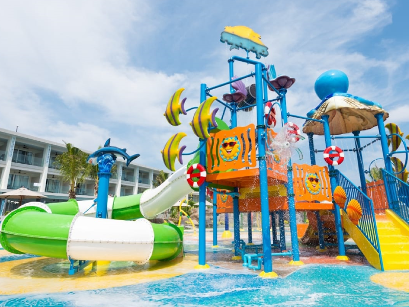 Theme Water Play system with 4 platform is available with four different square platform, with 4 different type of slides like turning slide, tunnel slide with lots of fun element like bucket with splash roof, rotating wheel, water free fall, water sprinklers, different type of nozzles jets etc.Available in attractive colours. Robust design confirming to international standards. Customized as per client’s budget. Provides attraction for Resorts, Hotels and Water Parks.
