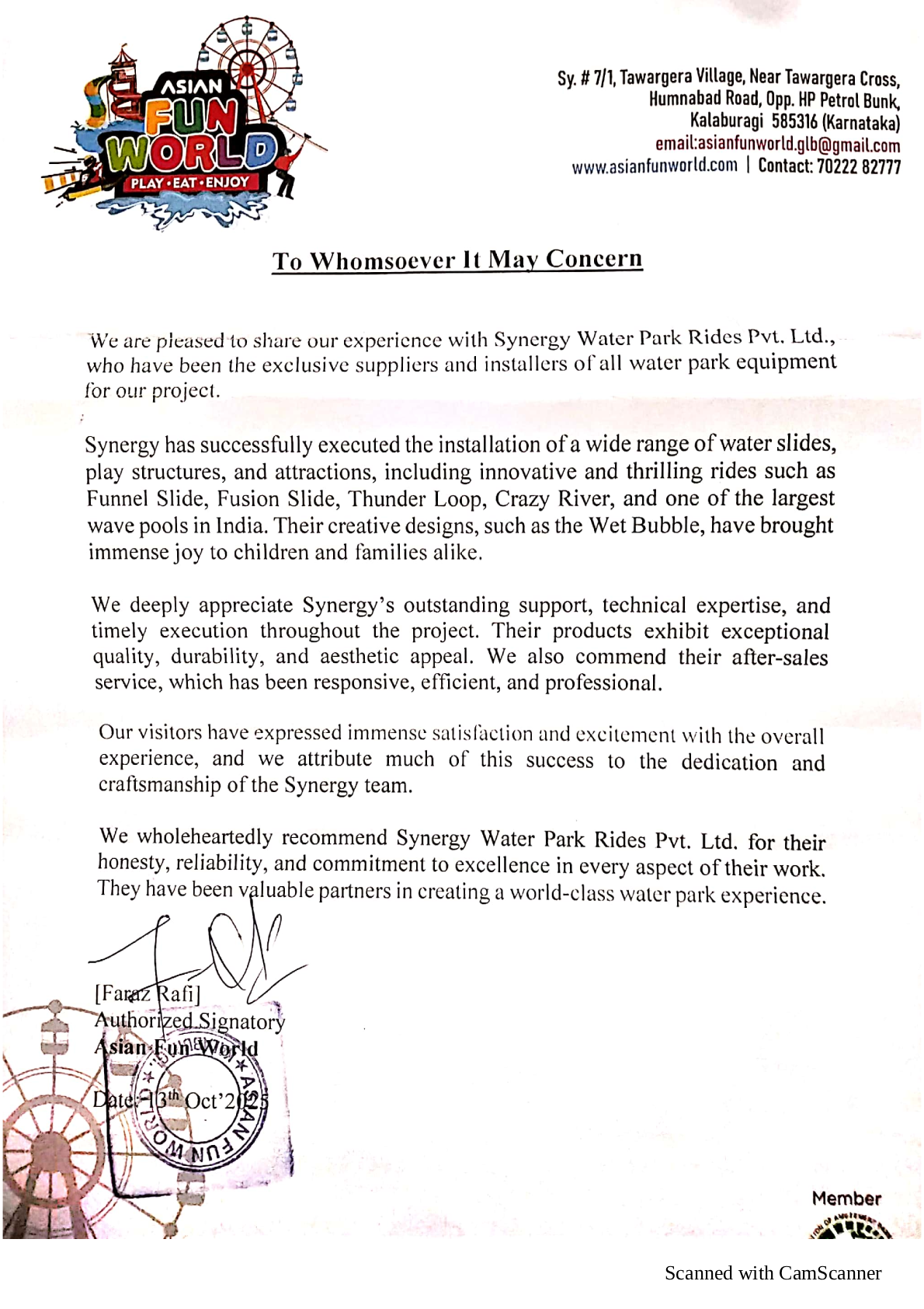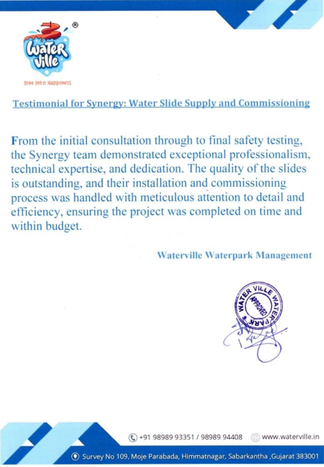 At Synergy Waterslides, we design, engineer, and manufacture world-class water slides, aqua play systems, and aquatic attractions that deliver safe yet thrilling experiences for guests of all ages. From amusement parks and resorts to hotels and municipal waterparks, our expert engineering team crafts custom water attractions that blend innovation, fun, and safety. Trusted by leading destinations worldwide, we turn creative concepts into unforgettable aquatic adventures that define the future of water-based entertainment.