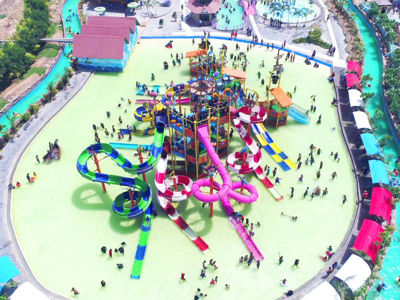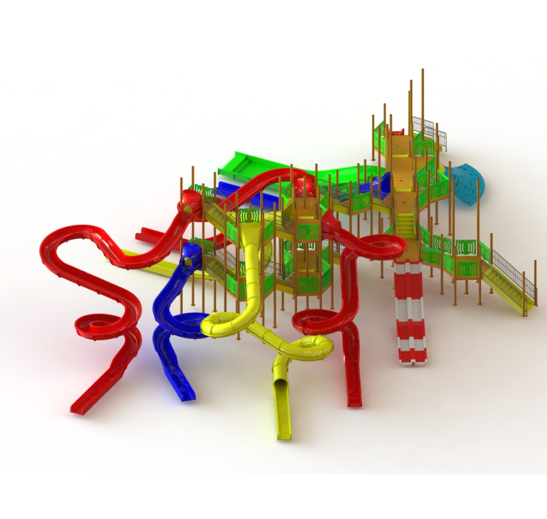 This 20P Water Play System is available with 20 different square platform from different height, with 11 different type of slides like turning slide, tunnel slide, body wave, family slide & multilane slide with lots of fun element like bucket with splash roof, rotating wheel, water free fall, water sprinklers, peacock nozzles, tilting cone, water curtain, different type of nozzles jets etc.Available in attractive colours. Robust design confirming to international standards. Customized as per client’s budget. A perfect attraction for Resorts, Hotels and Water Parks.
