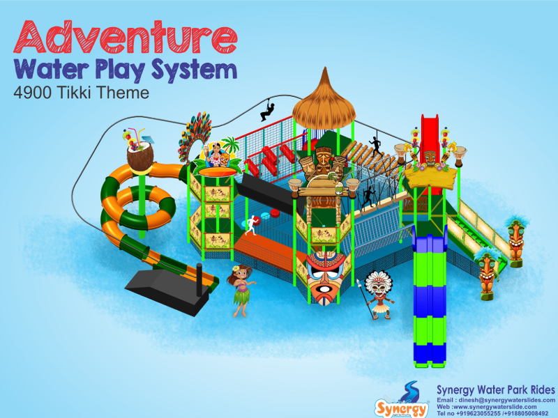 This new innovation from the house of Synergy is a combination of Adventure Fun and Water fun for all ages of People. Its unique features are Zip Line , Floating Bridge , Slippery logs, Rolling logs ,Bamboo bridge ,V and Net crossing , Mountain Climber etc It shall have different types of Straight , Turning , Tunnel slides with twist and turns which shall provide thrill to all the guests.This Adventure Water Play System is available in 3 different variants.